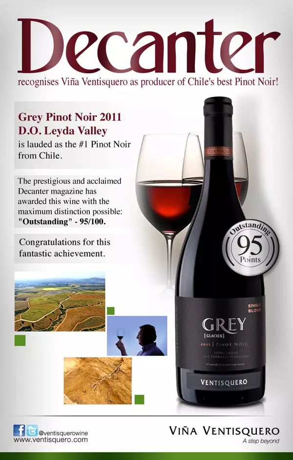 冰川酒莊格麗系列黑皮諾紅葡萄酒 2011 年份(Ventisquero Grey Pinot Noir)就獲過《醇鑒》的 95 分高分評價,星級指數(shù) 5 顆星。此款酒散發(fā)黑莓、草莓的香氣,酸度適宜,經橡木桶陳釀后單寧柔和,品質優(yōu)異。