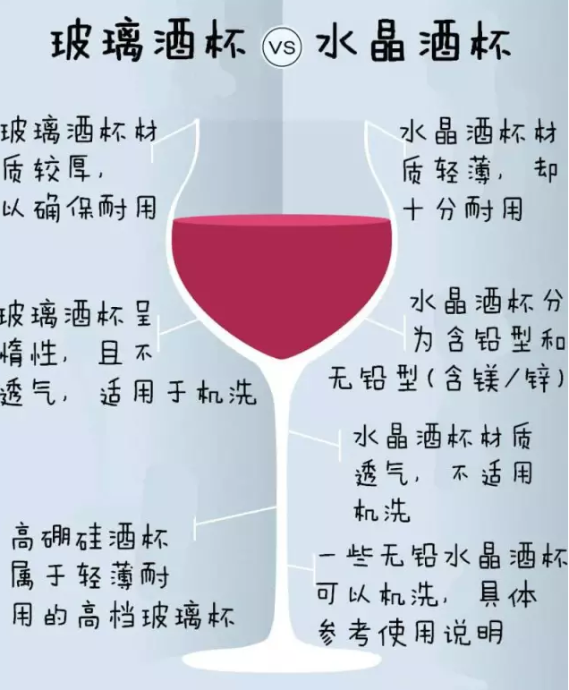 葡萄酒的酒杯種類繁多,形狀各異,再加上市場上各種商店價位……如何挑選適合的酒杯便成為了一件頭疼的事情。在選購的時候,除了需要關注酒杯的形狀外,材質也是不可忽略的要點。